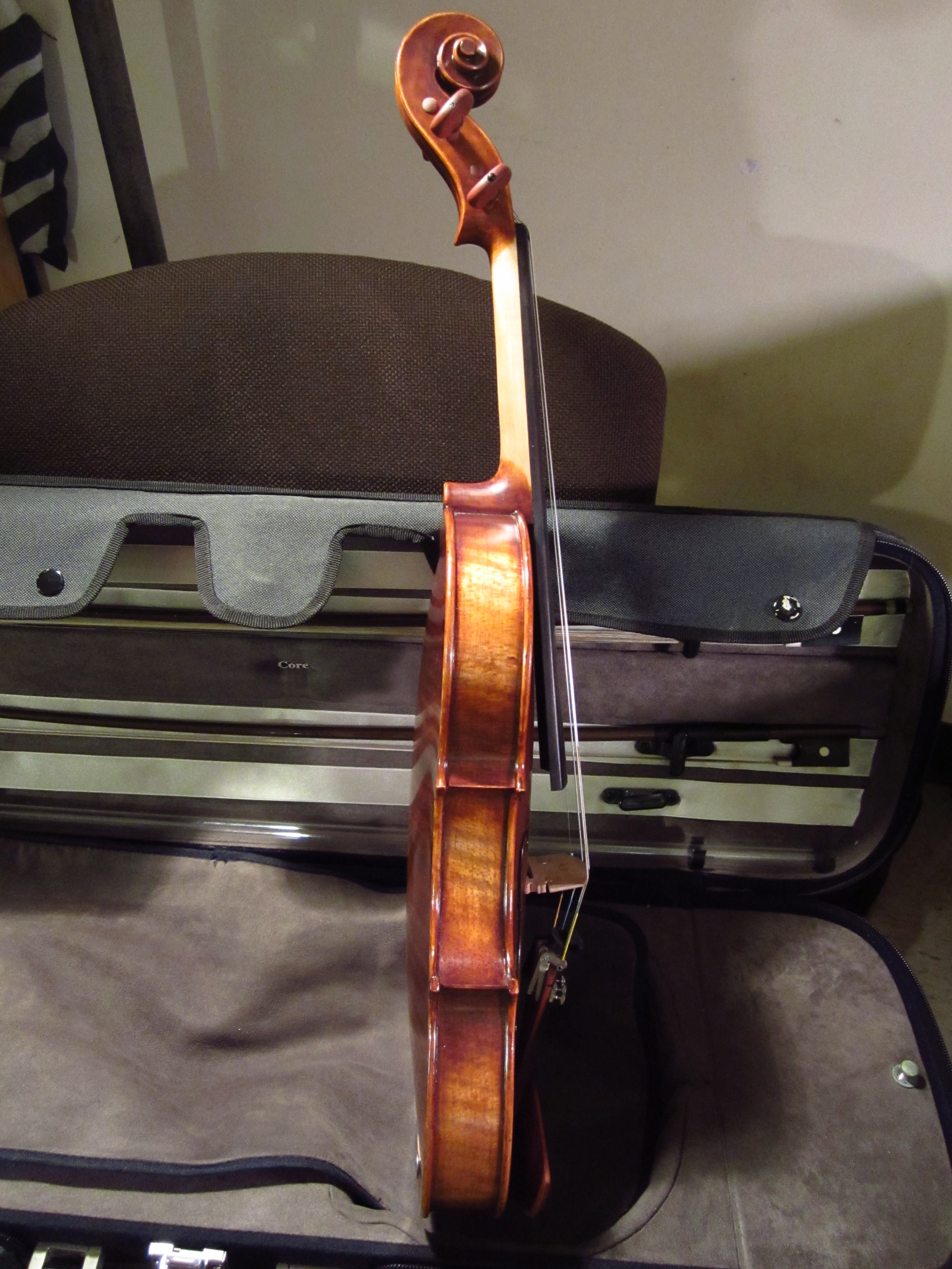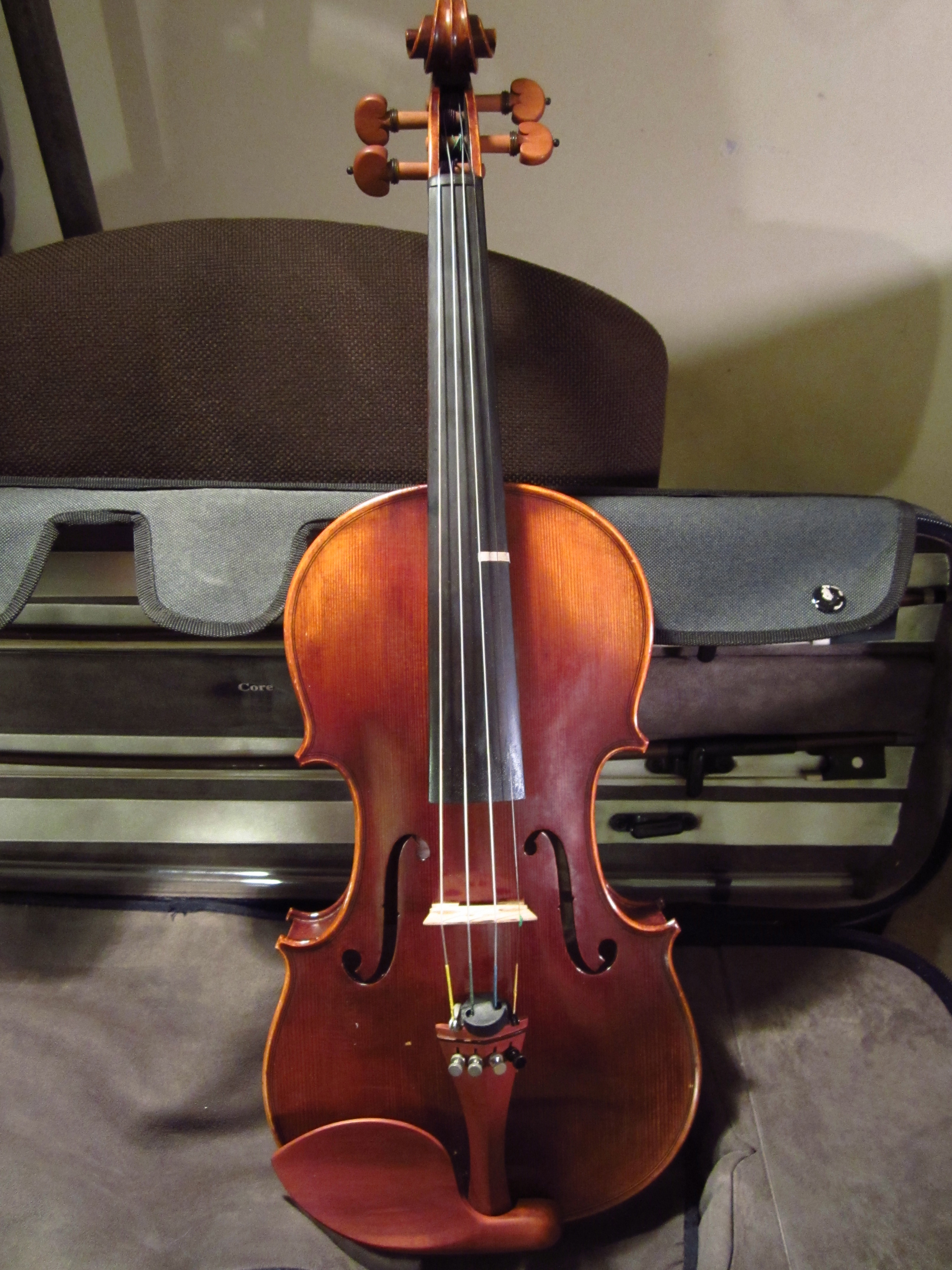 I had been playing violin for about four years when my parents decided to grant my wish of getting my own, brand new violin. The instrument I had been using was my sister’s old, cheap violin that was most likely factory made because its quality was quite poor. When I arrived at the home of the dealer, there were 6 beautiful violins laid out before me and I was asked to choose which I wanted. After careful consideration, I chose this particular one, and my parents purchased it for $1100 as a gift to me. I was ecstatic.