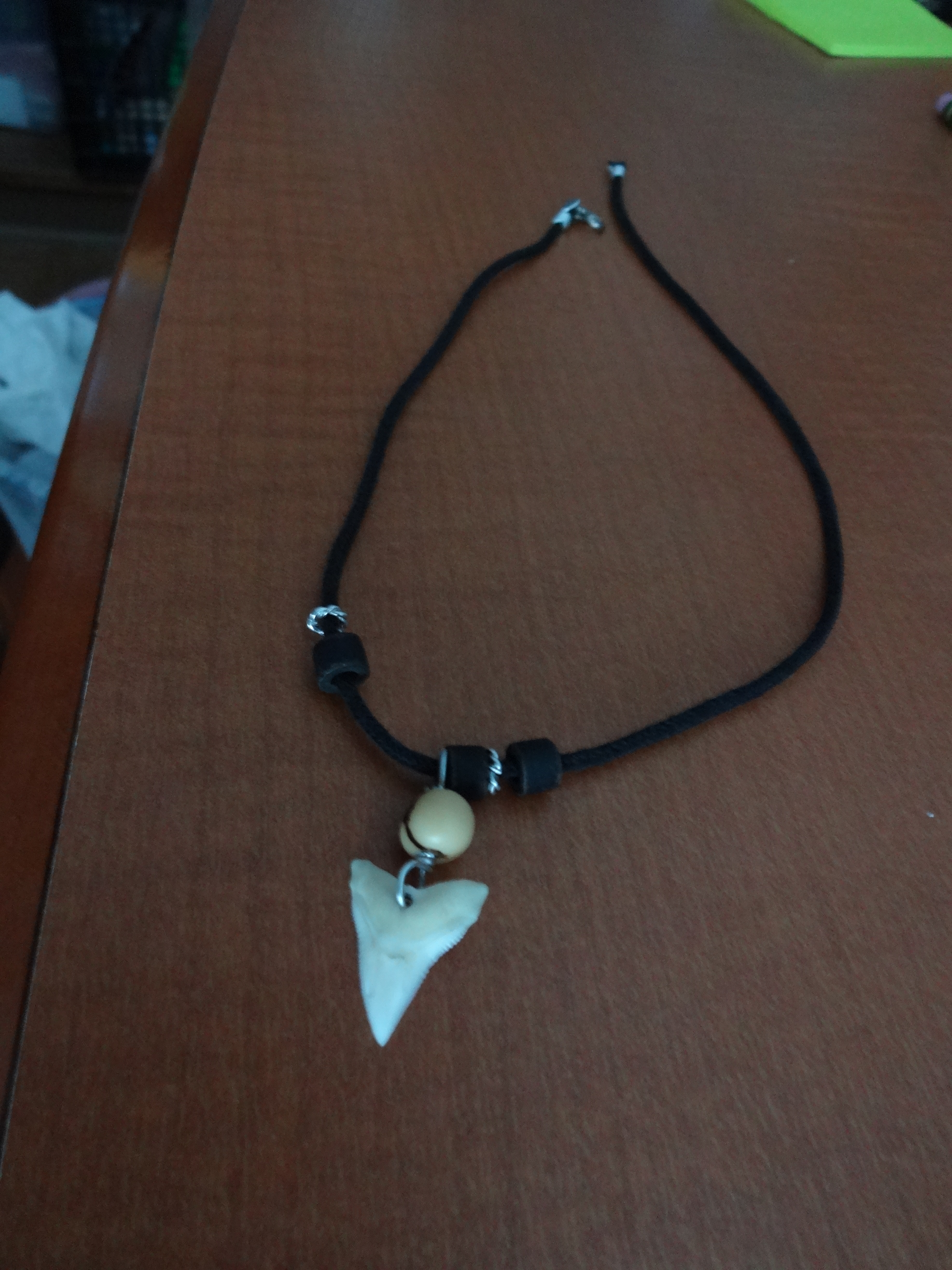 So, I decided to change it up this time and give my rosary beads a break. For this week’s blog I decided to showcase my shark tooth necklace. The necklace was given to me by a friend. She gave me the necklace on my 20th birthday before she transferred to another school in the middle of my second year at SUNY New Paltz. I consider it a symbol of our friendship. I wear it a lot now that she’s studying abroad in Italy. Maybe she’ll bring me back something else, who knows?