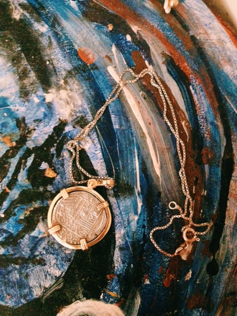 The necklace with the thin silver chain, that has the quarter sized coin hanging from it, and the gold frame, has a history, much longer than it’s chain. Found by the scuba diver/treasure hunter Mel Fischer off the coast of Florida, the Atocha coins were once on  Spanish galleon ships, long before they were found on the bottom of the ocean floor.   One, side has a large cross engraved in it, with a cloud like frame around that. On the other side, there is what looks like a coat of arms, some parts covered in engravings of castles and   lions, while other parts are just adorned with horizontal lines here and there. On the far right of the arms reads the letters, “POD”. What it stands for, I’m not sure. Notably a weird thing to wear everyday, this coin not only reminds me of how cool I thought the treasurer hunter and his loot was, but of my family. As we each have a coin of our own that we wear. For the most part, the coin reminds me of my dad, who has been scuba diving since he was 18 years old. The man would love to get lost in the lull of the ocean, any time, any day. It reminds me of all the times he took me out to go snorkeling. I would always follow him as he harpooned eight feet down, to get a closer look at a fish or shell. And, now that I’m beginning the process of getting my own scuba diving license, I look at the coin as helping lead up to all that. It’s been with me since I was probably twelve years old, and by then I, much like my dad, was very happy staying among the salty waves. And now, 21, graduating college and hopefully doing something enjoyable with the coming years, perhaps it’s a symbol of some adventure to come. On the ocean floor, or bobbing above them.