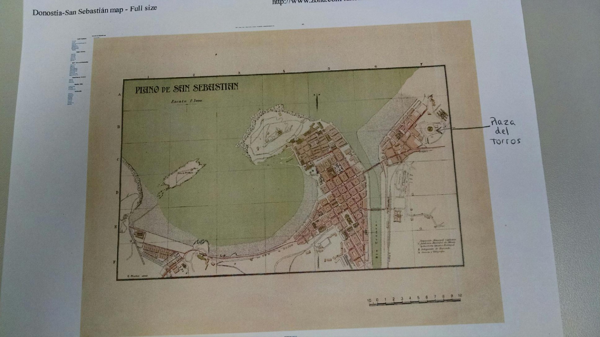 A map of San Sebastian. The Playa de Toros is located on the right.
