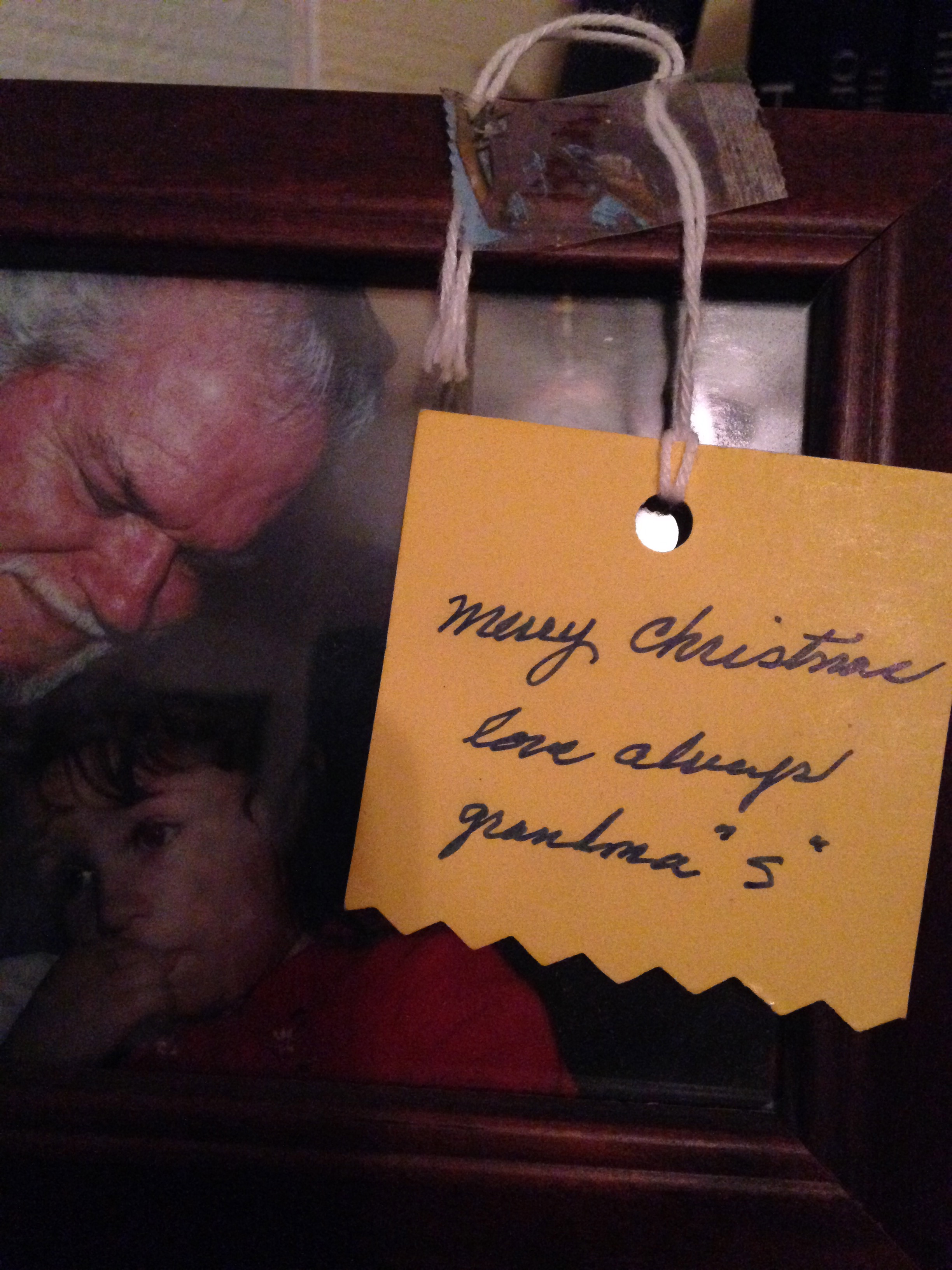That’s when I realized the other side of my tag wasn’t blank. In her scribbled handwriting it read: “Love Always – Gma S”. I checked the other tags as my cousins took them off of their presents, but only mine had a message on the blank side. Later my aunt told me that she didn’t have enough time to write on everybody’s tag. A lot of the presents were not even wrapped yet. Now instead of being Grandma’s nametag, the little yellow piece of paper is my last note from her. It now stays taped to a picture frame and serves as a daily reminder that somewhere an angel still loves me.