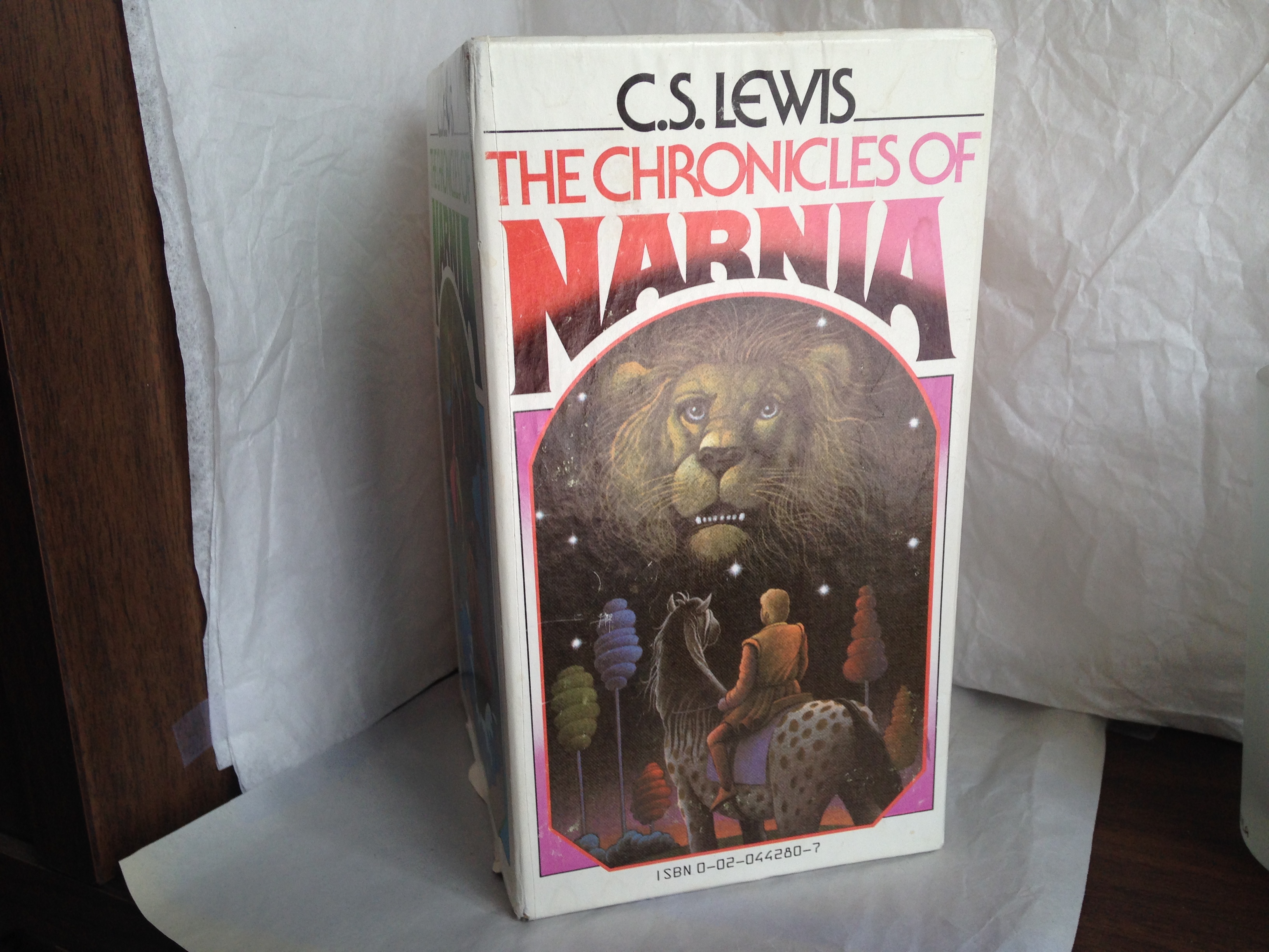 During the fall semester of 2013, I was lucky enough to land a spot in the ever popular course on Classic Juvenile Fantasy. A peek at the required reading list revealed that I had already read many of the texts as a kid, a discovery that understandably excited me. Not only would I have a legitimate reason for rereading some childhood favorites during the semester (a luxury I cannot generally afford when faced with the stack of reading for my various English classes), but I also figured I could save a few dollars by borrowing most of the texts from my parents’ house. However, when I called my mom to share my thrifty plan with her, she informed me the several of the books had been donated to the local library. Oh well, thought I, it was worth a shot. My mom took it more seriously, and, on her next visit, she presented me with a used boxed set of C.S. Lewis’s Chronicles of Narnia. Like many children born after 1950 (the year in which the first chronicle, The Lion, The Witch, and The Wardrobe, was published), I read most of Lewis’s adventure in Narnia and was utterly charmed by Aslan the lion. At the time, I held the not so secret hope that if I did not receive an owl that I would at least find a wardrobe into another realm. However, in 2013 when my mom handed me the boxed set, it had been years since I had even thought of Narnia. To be honest, I do not quite remember what my childhood copy of The Lion, The Witch, and The Wardrobe looked like. It was certainly newer than the set I now own. However, what it lacks in youth, the set makes up in character and an interesting, albeit mysterious, background.