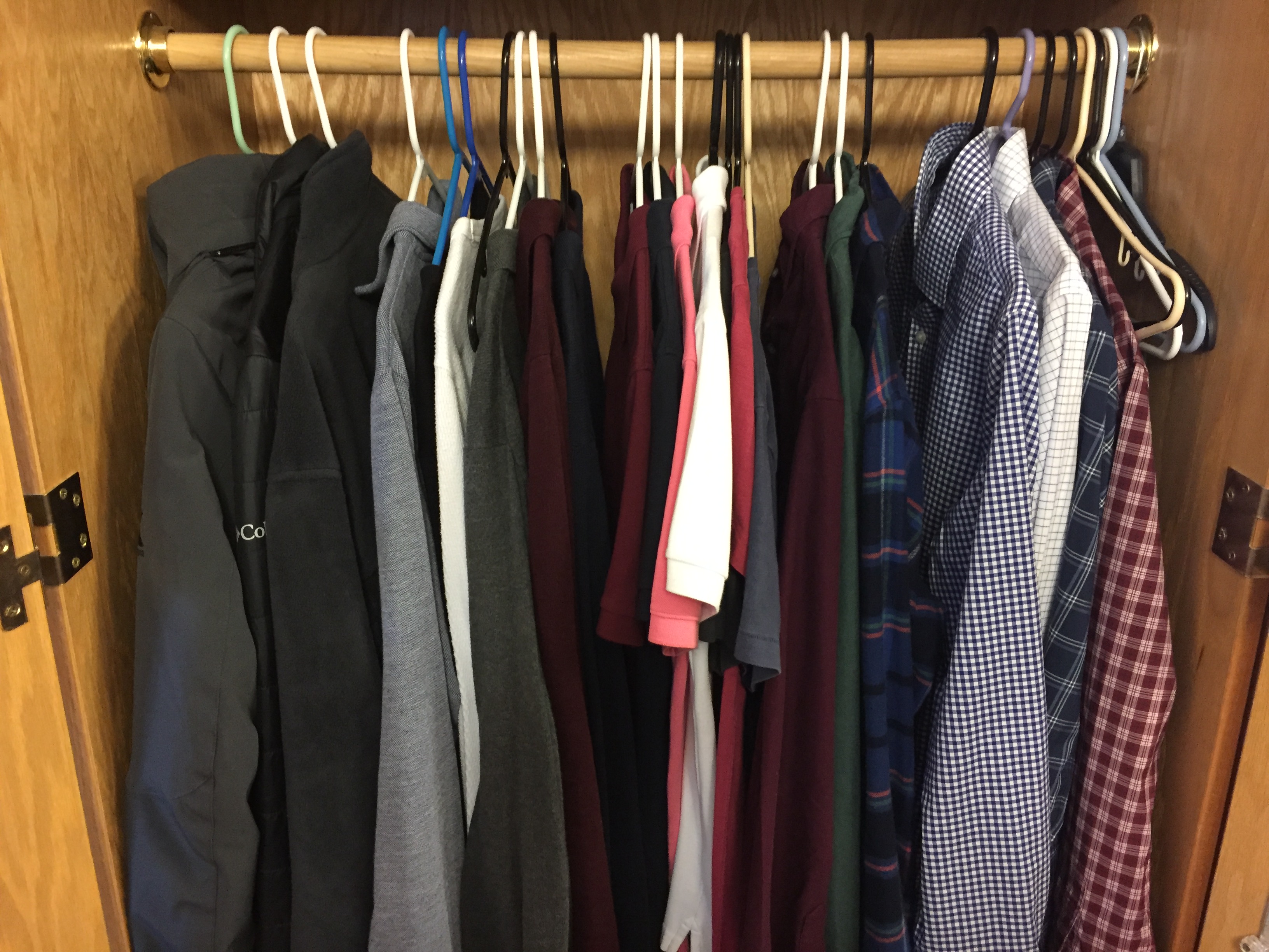 I began by categorizing each of my different articles of clothing into the following groups: jackets, sweaters, polos, t-shirts, casual button downs and then more formal button downs. After completing this short task, I immediately noticed a difference in the contents of my wardrobe. As everything began to appear much more orderly and unified than before, I desired to continue and see how far I could push Kondo’s philosophy. In order to achieve this, I decided to utilize her “Joy Test” to determine what pieces of attire should be retained and what pieces of attire should be theoretically discarded.