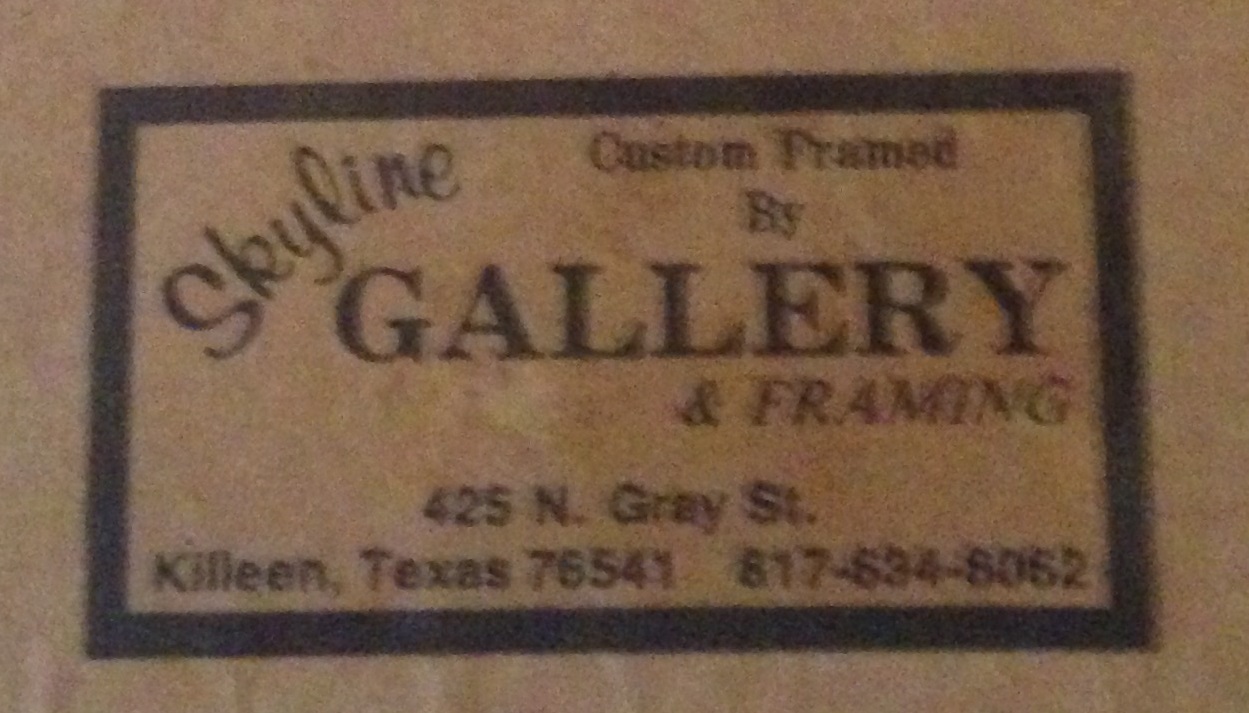As far as the case, I know from the stamp on the back that it was put together from four frame corners at Skyline Gallery and Framing in Killeen Texas. My uncle lived in Texas very briefly from around 2004 to 2007, so this means that the display that sits on my mother’s dresser was put together in that time, moving the medals from stand alone pieces to a collection in memory of my grandfather.