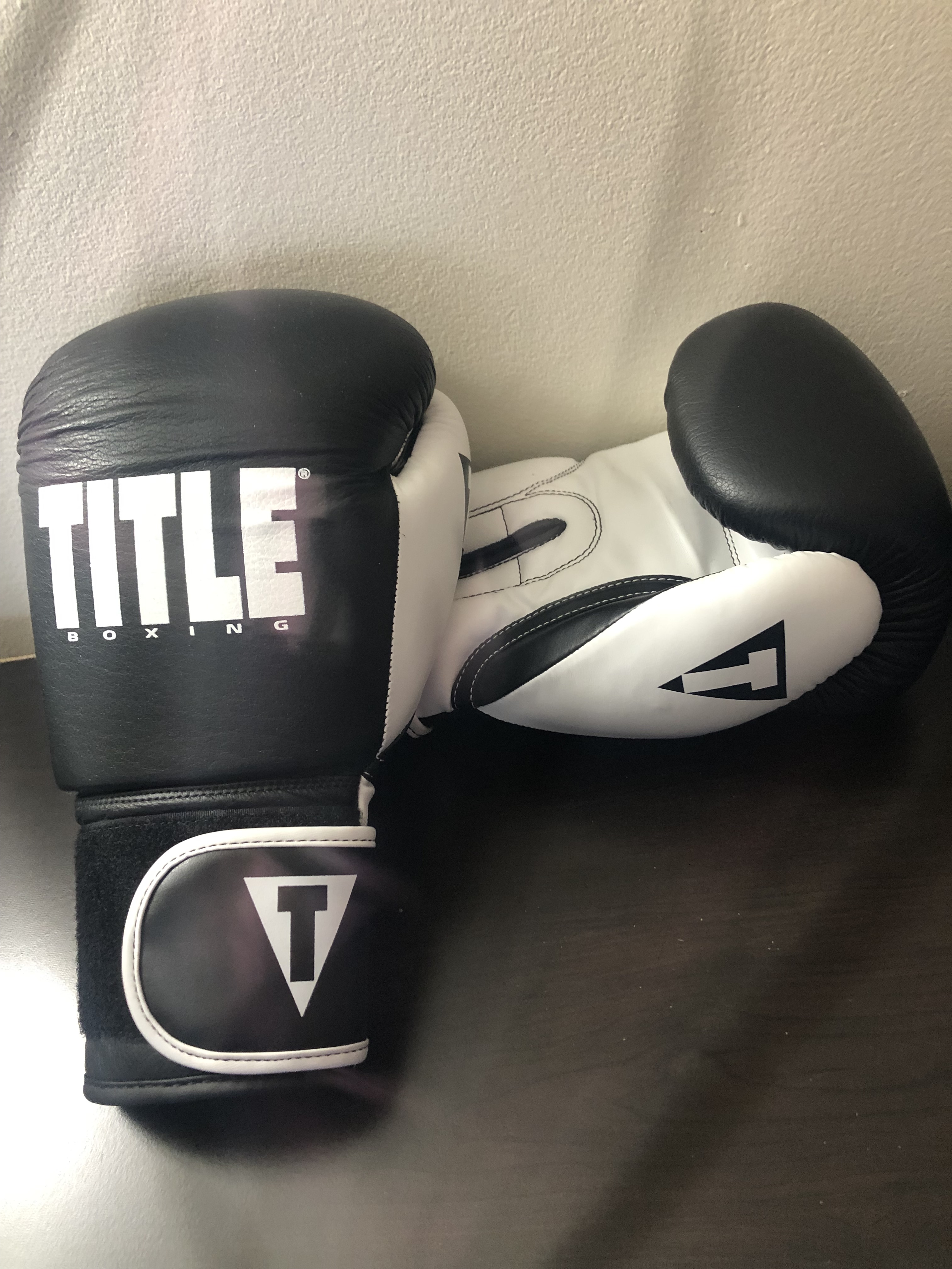 My 12 oz classic black and white Title boxing gloves are a great addition to my dresser. They serve as a reminder of my strength and reminder to keep fighting. What I have always noticed about the fighters I have looked up to in and out of the ring is that they always get back up and keep fighting. We all have fights in our own lives and we must keep punching through.