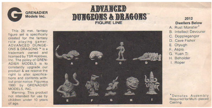 Cook, Jim. “Grenadier’s AD&D Solid Gold Line.” Paintbrushes for Miniatures, http://www.dndlead.com/Grenadier/Grenadier.htm.