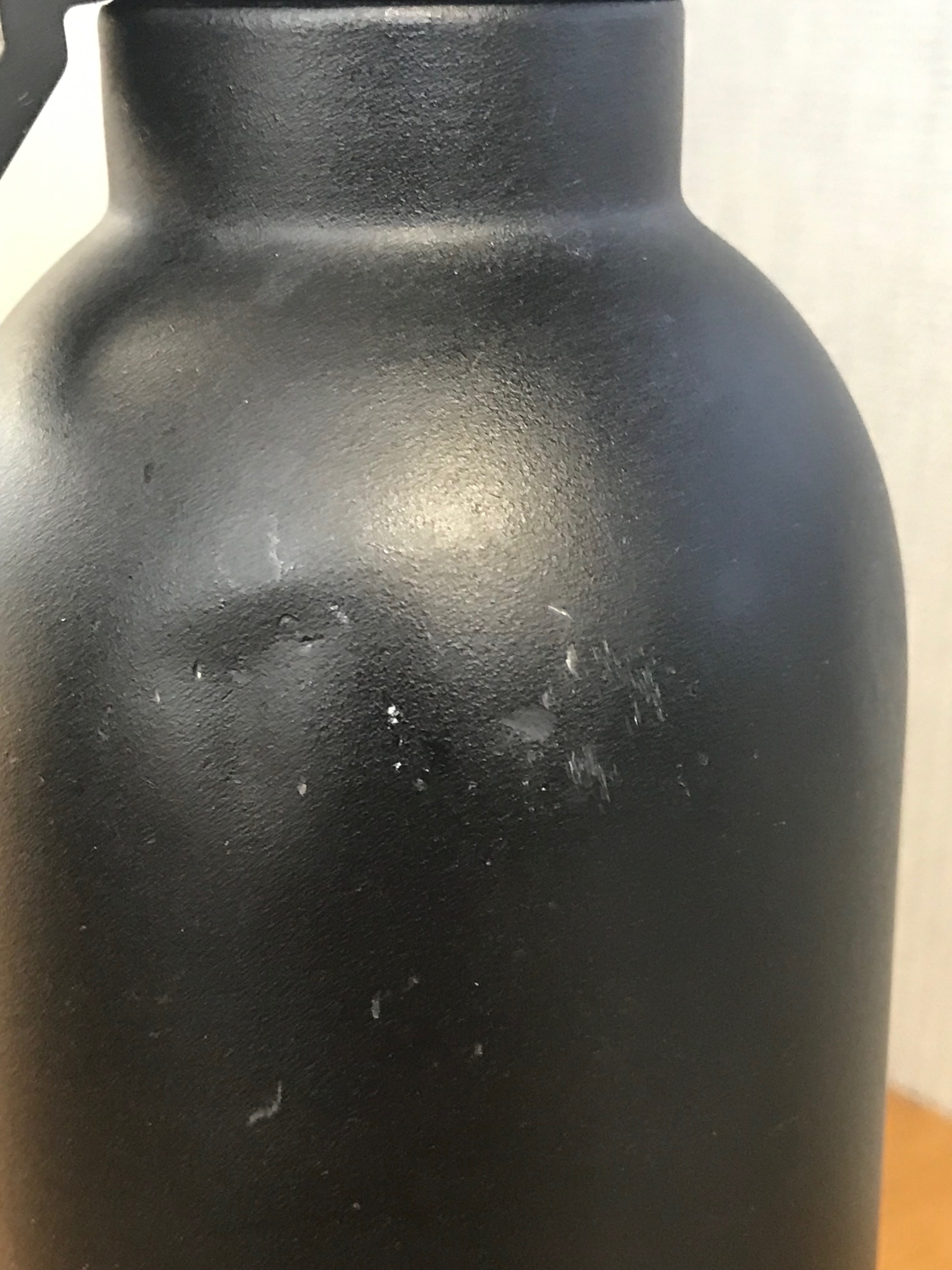 I was looking to spend the last of my dining dollars before leaving for the summer, and as the $30 dollar bottle wasn’t something I would normally spend “real” money on, it was a nice treat. Having used the bottle for quite some time now, I have to admit that $30 was a very reasonable price for this item. The bottle is relatively thin, holds 20 fluid ounces and fits perfectly into the side pocket of my back pack. The exterior, which was coated with a matte black finish when I first purchased it, has since sustained a handful of dents and scratches from–you guessed it–me dropping the bottle.
