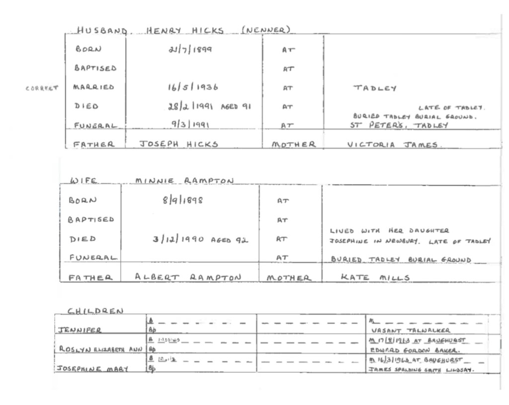 I begin with the small town of Tadley, England. I’m lucky to find an entire website dedicated to the cataloguing of this place and its people, the Tadley and District History Society. Through records of births, baptisms, marriages, and deaths, I confirm that my grandmother was born there in 1938, and her family had been in the area for generations prior. My grandmother referred to her father, Henry Hicks, as a “gypsy” and mentioned that her mother, Minnie Rampton, had urged him to settle down and work a factory job. I trace the lineage of Henry Hicks and find that his grandfather Sylvanus Hicks is recorded as “traveling hawker” and his family was “not living in houses” in 1861, and was living in a “housed van” by 1871 in Tadley. Even his son, Joseph Hicks (my grandmother’s grandfather), was noted as a “hawker and dealer” in terms of his occupation. My family has been moving around for generations, taking with them only the objects they valued. Like this book that I now hold in my hand, which has traveled from England to India and now to America.