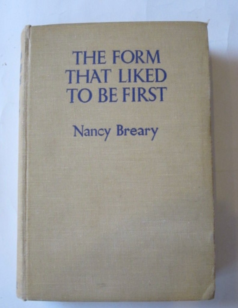 After I manage to decipher the handwriting on the bookplate, I’m excited to find quite a bit of information that can help me uncover the story of this book. Tadley Corps refers to the branch of the Salvation Army that my grandmother attended as she grew up. I know my grandmother’s maiden name, Jennifer Hicks, and the date she received this book, January 1951. I know the names of the Salvation Army officers who presented this prize book to her. And of course, I know the title and author of the book: The Form That Liked To Be First by Nancy Breary.