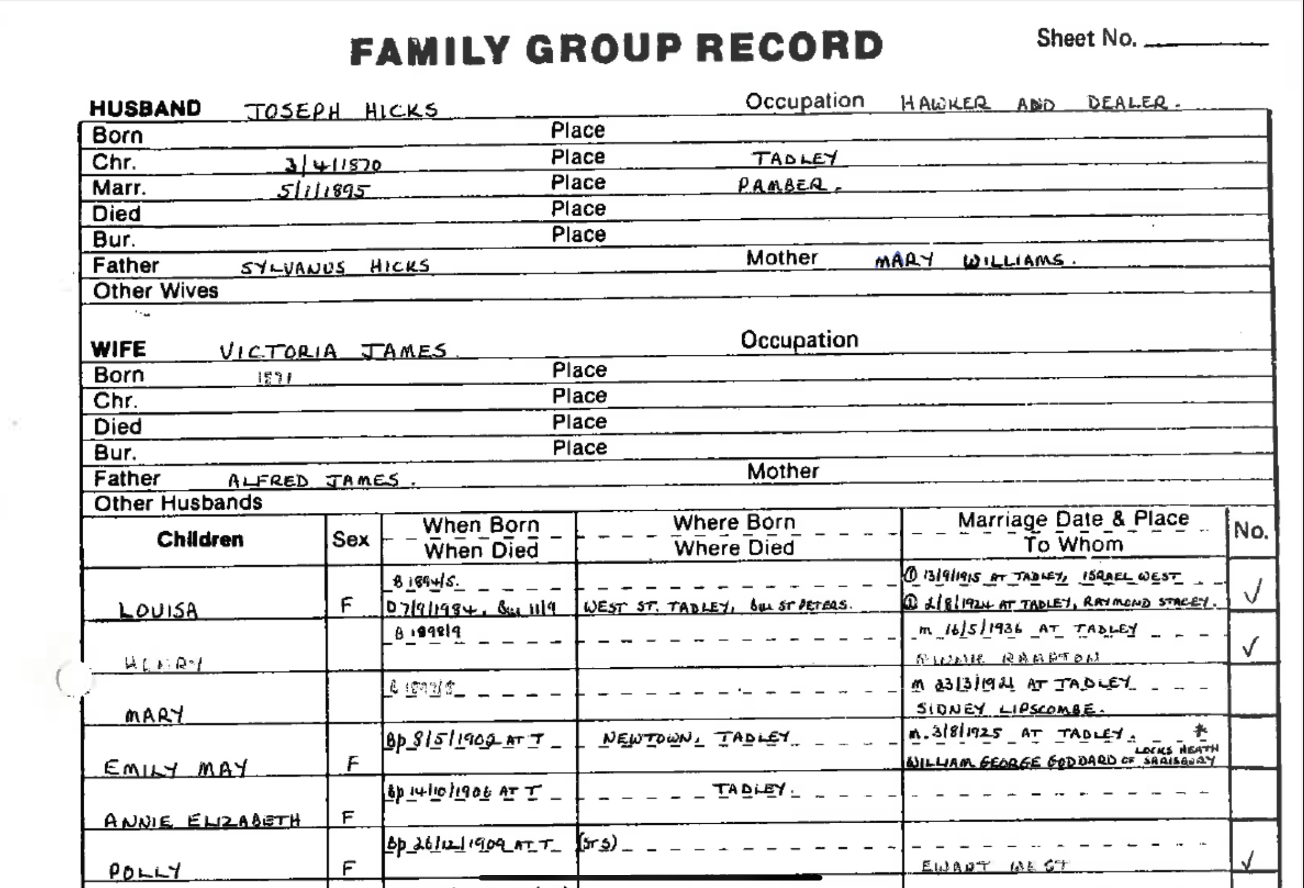 I begin with the small town of Tadley, England. I’m lucky to find an entire website dedicated to the cataloguing of this place and its people, the Tadley and District History Society. Through records of births, baptisms, marriages, and deaths, I confirm that my grandmother was born there in 1938, and her family had been in the area for generations prior. My grandmother referred to her father, Henry Hicks, as a “gypsy” and mentioned that her mother, Minnie Rampton, had urged him to settle down and work a factory job. I trace the lineage of Henry Hicks and find that his grandfather Sylvanus Hicks is recorded as “traveling hawker” and his family was “not living in houses” in 1861, and was living in a “housed van” by 1871 in Tadley. Even his son, Joseph Hicks (my grandmother’s grandfather), was noted as a “hawker and dealer” in terms of his occupation. My family has been moving around for generations, taking with them only the objects they valued. Like this book that I now hold in my hand, which has traveled from England to India and now to America.