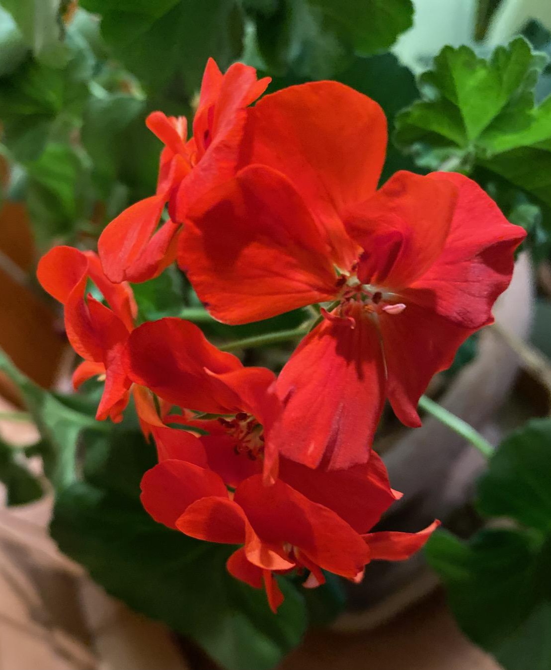 Fig 1.1 – Top view of garden geraniums on a windowsill.