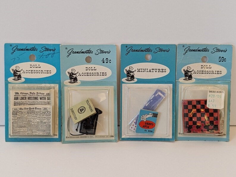 John named his fledgling company after his mother, Mrs. Anna Stover. She was an essential part of the operation and would help make the very first sample products. By 1970, Grandmother Stover’s, Inc. employed 15 full-time and 25 part-time employees. The Lancaster Eagle-Gazette published an article in December 1944 titled “New Idea in Christmas Toys Named for Lancaster Woman,” which stated, “this year the toys are being shipped to large stores from NYC to Los Angeles. The demand for them is much greater than the supply.” Grandmother Stover’s was turning out miniature kitchen supplies, newspapers, decks of cards, platters of food, gilded mirrors, bedspreads, bars of soap, and any other household item, appliance, or furnishing one could possibly imagine. The company also sold party favors, cake toppers, and other small miscellaneous toys as part of their Trimmin’ Trinkets line.