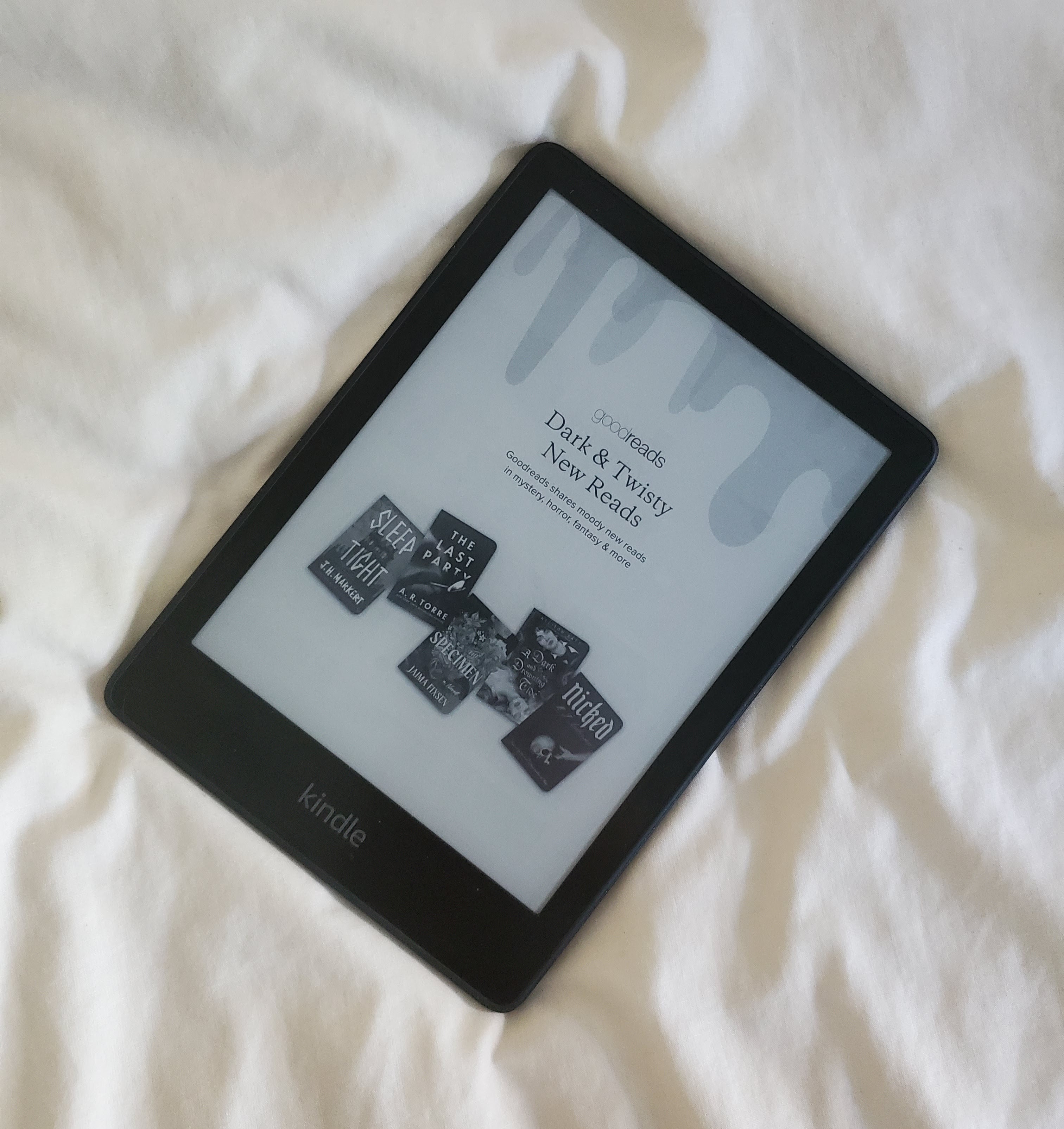 One of my most used possessions is my 2022 11th generation Kindle Paperwhite. First released in October 2012, the Kindle Paperwhite is 6.6 inches long by 4.6 inches wide by 0.3 inches thick and weighs 5.6 oz. Structurally, it consists of a matte screen encased in a beveled plastic frame. The Kindle Paperwhite is named for its clean white display, which creates more contrast with the black text than the light gray screen of earlier Kindle e-reader models.