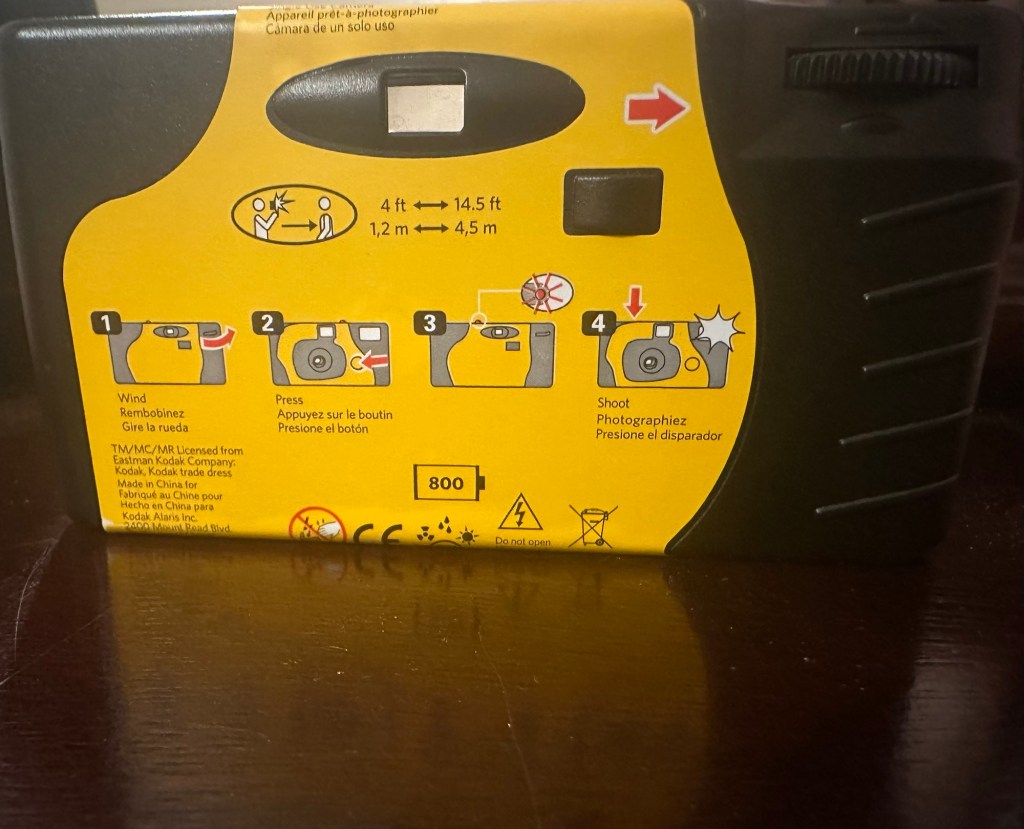 I purchased the disposable camera from Walgreens. The film camera is a Kodak power flash disposable 800. This camera is a single use with the ability to only capture 27 images. On the body of the camera, it is labeled with directions on how to use it. The first time I went to take a picture I followed all the directions but when pressing the shot button I did not hear it go off. However, the only way to confirm that no picture was actually taken is to see the amount of pictures remaining. The amount still stated 27 so I did not do something correctly. For a moment I thought that I had bought a damaged camera. However, I figured out that I was not winding the camera all the way which hindered its ability to capture the shot. While using the disposable camera I found myself not worrying about how the photo came out as I could not view it right away, I just did my best to obtain my desired shot by how I saw the shot through the viewfinder. With each photo I took this week using the disposable camera, I tried to make sure that each picture was different because I valued that I am limited to a certain amount of photographs.