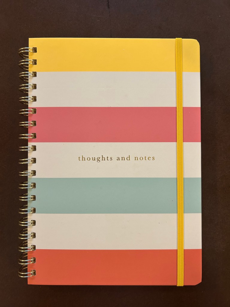 About a three months ago, I walked into my room after coming home from work to see a journal sitting on my bed. I was leaving to come back to New Paltz in a week from what was a disastrous summer. Between work, family, and a devastating break up, I was struggling mentally. I had a challenging time opening up to anyone about the feelings I was experiencing. I was isolated in my own head and could not escape. As I sat down on my bed, I picked up the journal. This journal was vibrant in having a white background with seven stripes of colors alternating between yellow, pink, blue, and orange. The journal has a yellow strap to secure the book when closed, along with gold rings to hold the pages. The title of the journal in gold letters read “thoughts and notes.” I was skeptical of the process at first because I had never journaled nor put my thoughts and feelings into any personal writing for myself. I was scared to reread my emotions along with finding the courage to not judge myself. I wrote one entry the week before returning to school and have not touched the journal until this week. I am hoping to discover if I will allow myself to lean into the process and let my thoughts go. I have a tough time committing to experiences that I know will benefit me. It is the feeling I do not deserve that satisfaction with the choices I have made.