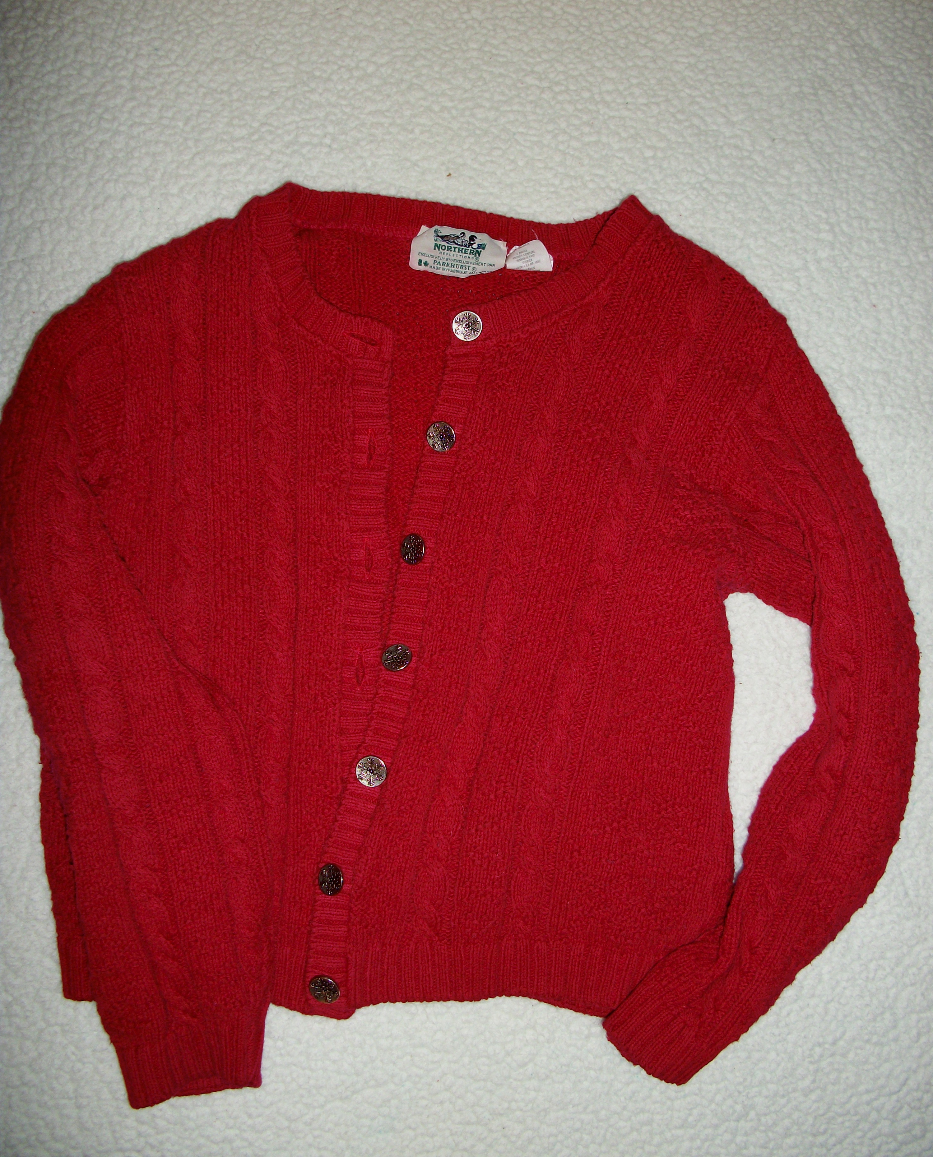 And there is was. I picked up the neatly folded bright red sweater and fell in love. It was a perfect fit, which is odd because I am over a foot taller then my Gramma. It was thick and baggy, falling loosely around my arms and torso. And it was soft with years of washing and wear and warm with more then fabric but also with memories. It has big metal buttons printed with snowflakes, and when you take the sweater out of the dryer you run the risk of searing your hand a bit on them. But the buttons are getting a little loose with age. They are holding on to their fraying red threads for dear life. I live in constant fear of the day I put on my sweater and a button has gone missing. But for some reason, despite the how long this sweater has been around, the extra button is still sewn to a seam along the bottom, so my fears are alleviated for the time being. According to the tag that is only hanging on by a few threads, the sweater is from a store called Northern Reflections. There are two loons embroidered on the top of the tag and the print is mostly in french. It reads “Farbique au Canada” with a small Canadian flag along side the text. Another tag lists out my sweaters washing instructions…”machine wash cool do not bleach tumble dry.” And below that is my sweaters contents…”70% cotton 25% acrylic 5% other fibre.