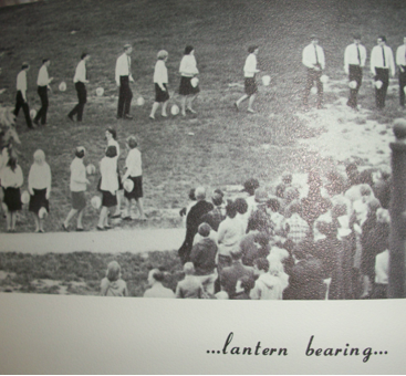 Lantern Nite was dreamt up in 1929 by Susan Sposato, Winifred Barry, and Muriel Gregory, who were the presidents of the freshmen, junior and senior classes. Lantern Nite was a ceremony held at the end of each year that honored of all three classes (New Paltz didn’t have a four year program until 1938) promotion to the next grade and their academic progress over the past year. Lantern Nite was a campus wide event, honoring everyone from the seniors becoming alumni to the high schoolers entering their freshman year.